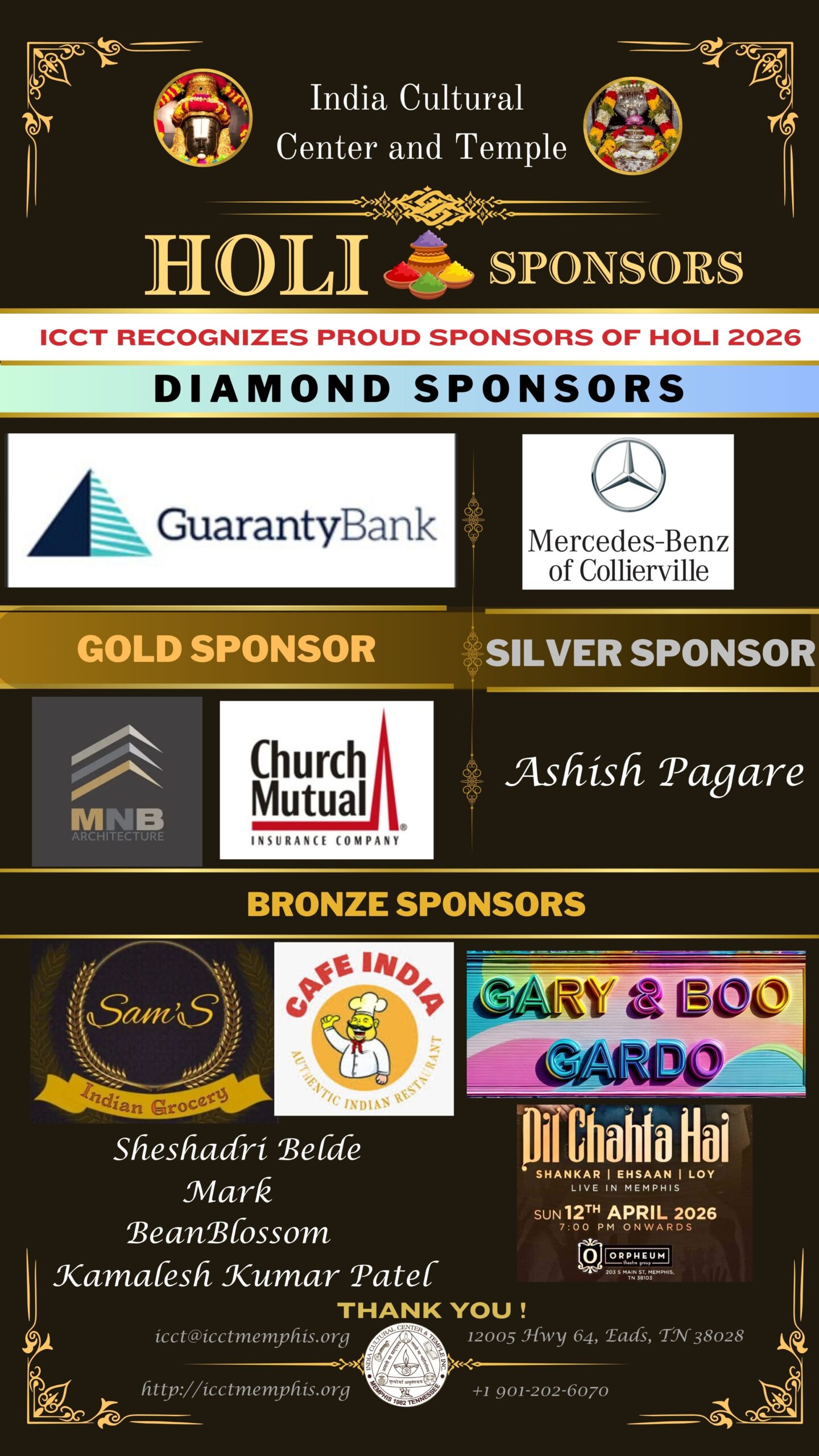 Venue: India Cultural Center and Temple, 12005 Hwy 64, Eads, TN 38028