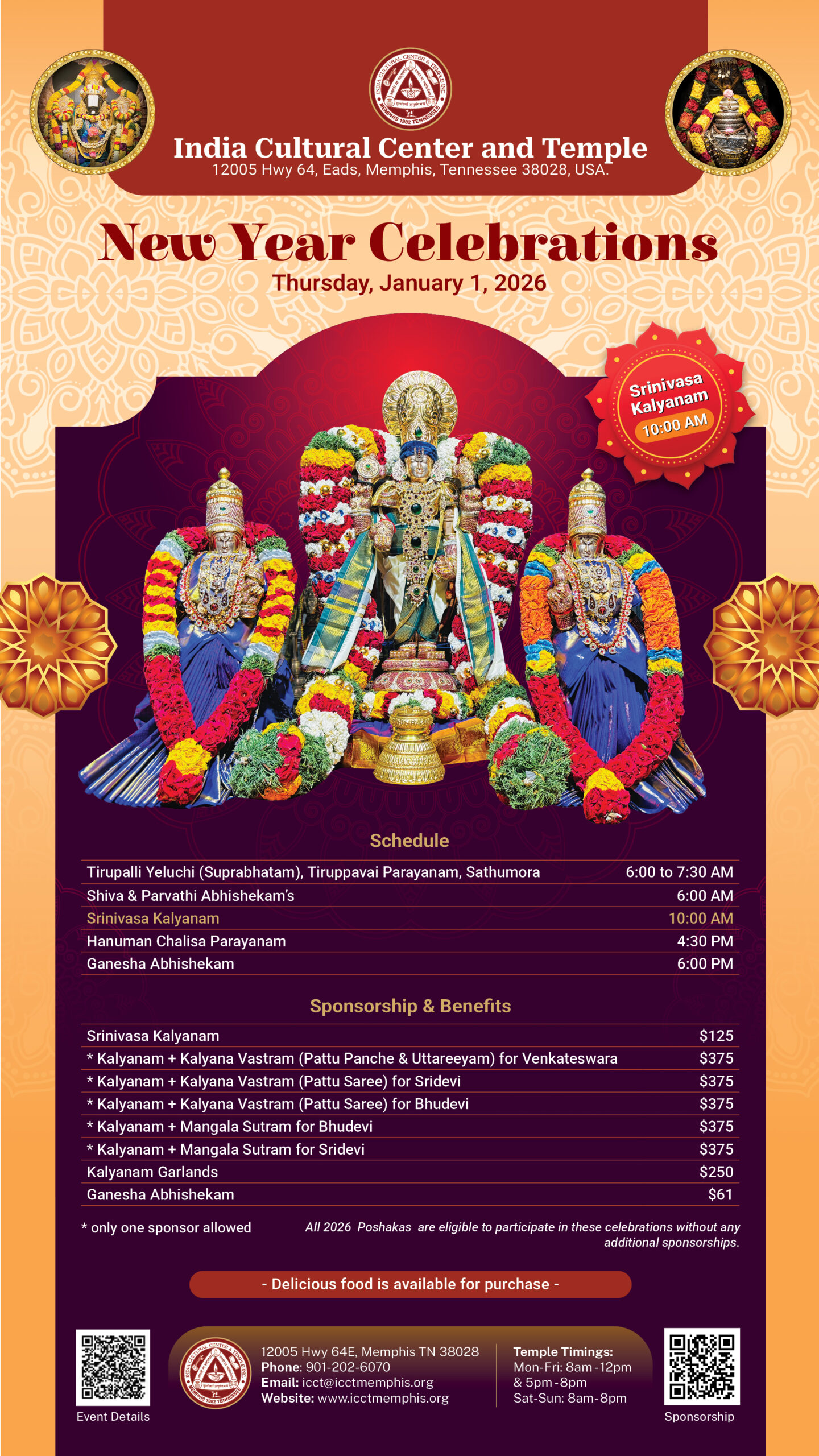 Kalyanam + Kalyana Vastram (Pattu Saree) for Sridevi $375 (only one sponsor allowed)