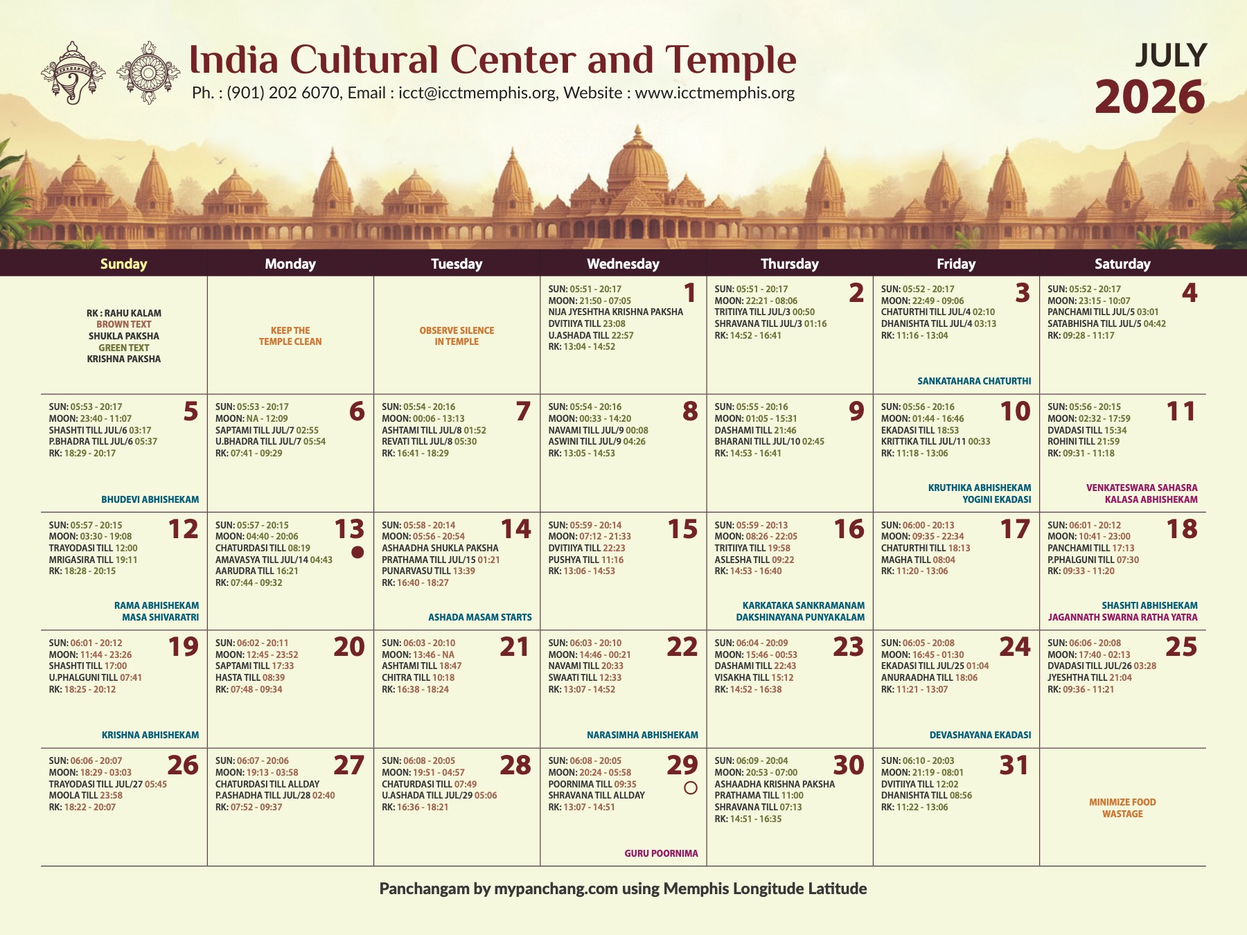 Temple Calendar JAN FEB MAR APR MAY JUN JUL AUG SEP OCT NOV DECCalendar Explanation Services Prices Naga Devatha Poojas Priest Contacts