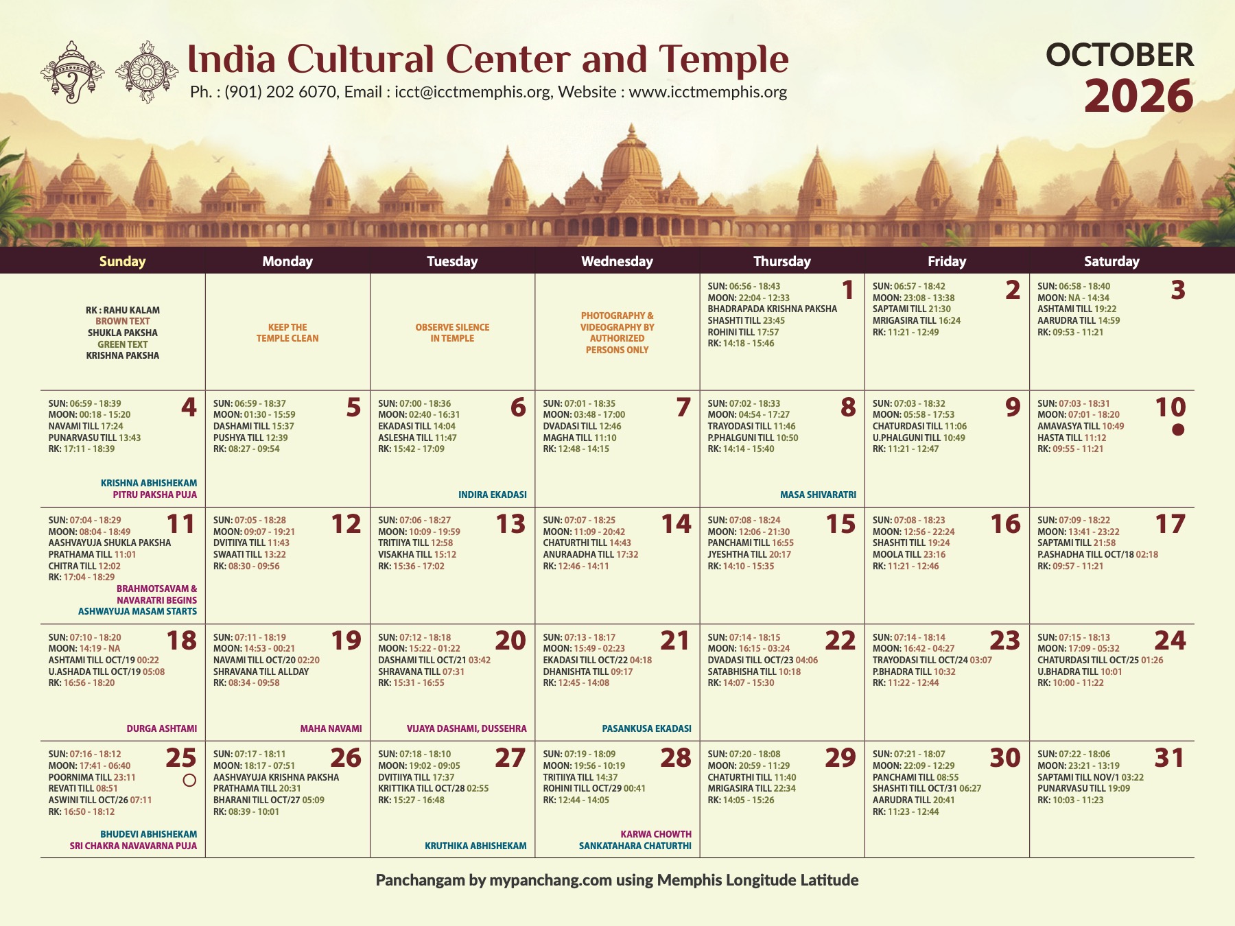 Temple Calendar JAN FEB MAR APR MAY JUN JUL AUG SEP OCT NOV DECCalendar Explanation Services Prices Naga Devatha Poojas Priest Contacts